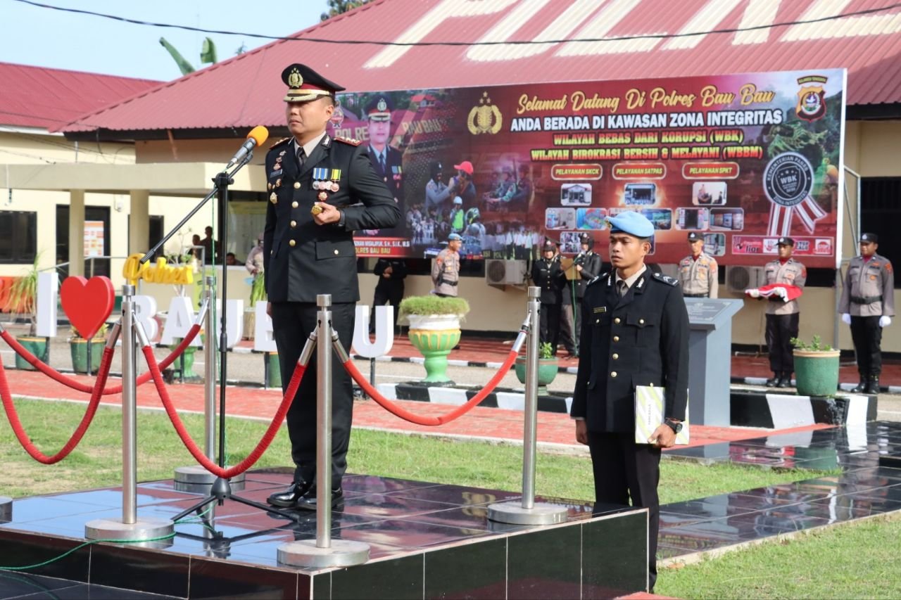 Dalam upacara tersebut, Kapolres Baubau AKBP Bungin Masokan Misalayuk, SH, SIK, Msi bertindak sebagai Inspektur Upacara. Ia didampingi oleh Perwira Upacara Iptu Astar, SH, dan Komandan Upacara Ipda Safrin. Sejumlah pejabat utama, Kasat, Kasi, Kapolsek, serta perwira dan personel Polres Baubau juga turut hadir dalam upacara ini.