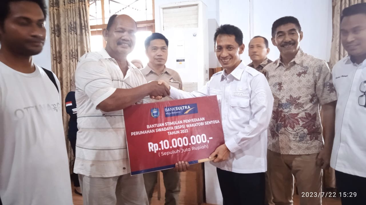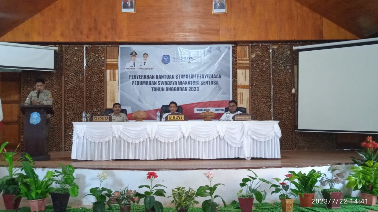BUSEL, SEGMENSULTRA.COM – Pemerintah Kabupaten Wakatobi melalui Dinas Perumahan Kawasan Pemukiman memberikan penyerahan Bantuan Stimulan Perumahan Swadaya kepada 980 unit rumah di Aula Pesanggaran, Kecamatan Wangi Wangi Selatan, Kabupaten Wakatobi, Sabtu, 22 Juli 2023.