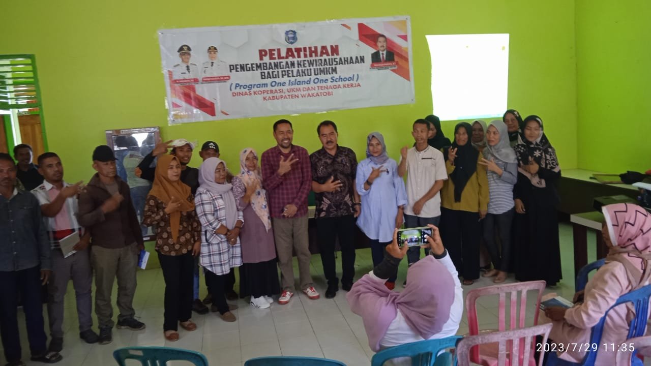 BUSEL, SEGMENSULTRA.COM – Dinas Koperasi UMKM dan Ketenagakerjaan Kabupaten Wakatobi selenggarakan pelatihan pengembangan Kewirausahaan bagi para pelaku UMKM di empat pulau yang berada di Kabupaten Wakatobi.