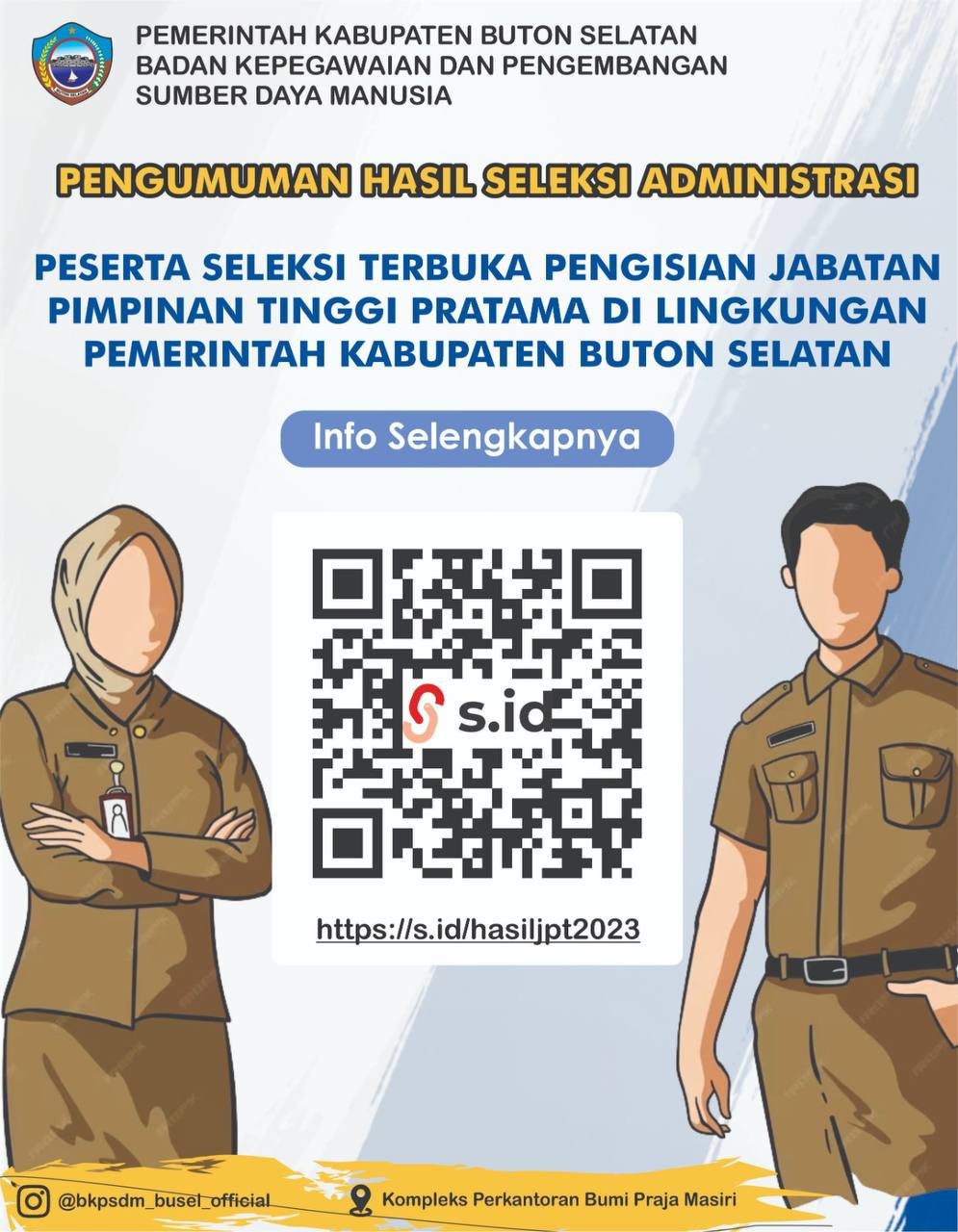 Selain itu, Informasi lebih lanjut dapat diakses melalui web.butonselatan.kab.go.id, Instagram BKPSDM Kabupaten Buton Selatan @bkpsdm_busel_official, dan papan pengumuman.