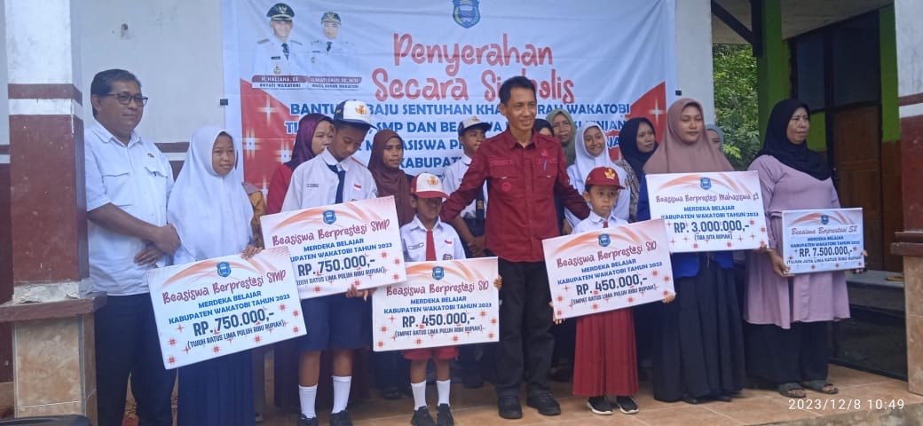 Sementara itu, Bupati Wakatobi H Haliana menyampaikan dalam sambutannya bahwa bantuan ini terinspirasi dari pengalaman hidupnya hingga mencapai posisi Bupati. Oleh karena itu, beliau bersedia memberikan bantuan seperti pakaian sekolah dan beasiswa kepada seluruh pelajar di Kabupaten Wakatobi.