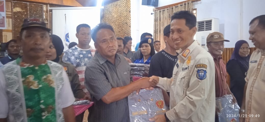 WAKATOBI, SEGMENSULTRA. COM – Bupati Wakatobi H Haliana memberikan 369 Pakaian Dinas kepada Linmas dan Relawan pemadam Kebakaran ( Damkar) pada masing-masing Desa di Dua kecamatan yakni Wangi wangi dan Wangi-wangi Selatan, di Aula pesanggrahan, Kamis 25 Januari 2024.