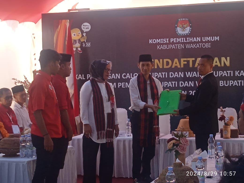 ” Saya menyampaikan banyak terima kasih meskipun dengan cuaca yang begitu panas kita masih bisa mengantar kami ke KPUD Wakatobi dan kembali juga dengan simpatisan yang sama, saya juga mengharapkan Doa dan dukungan agar kembali memenangkan Pilkada pada 27 November 2024 mendatang,” Ungkpanya.