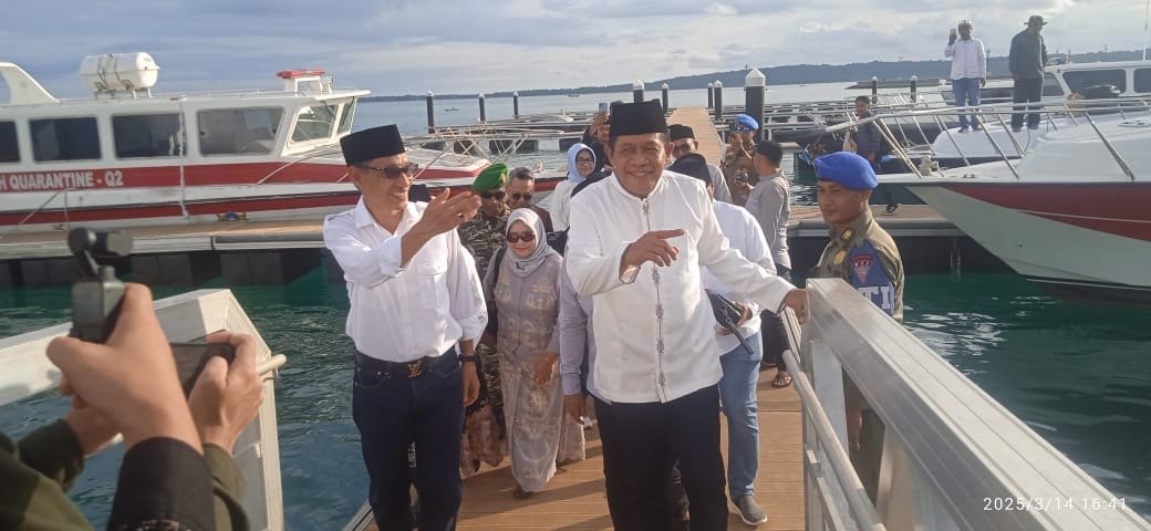 WAKATOBI, SEGMENSULTRA.COM – Wakil Gubernur (Wagub) Sulawesi Tenggara (Sultra), Ir. Hugua, menggelar Safari Ramadan di Kabupaten Wakatobi, yang disambut hangat oleh Bupati Wakatobi, H. Haliana, dan Wakil Bupati, Hj. Safia Wualo, di Pelabuhan Marina pada Kamis (14/3/2025).