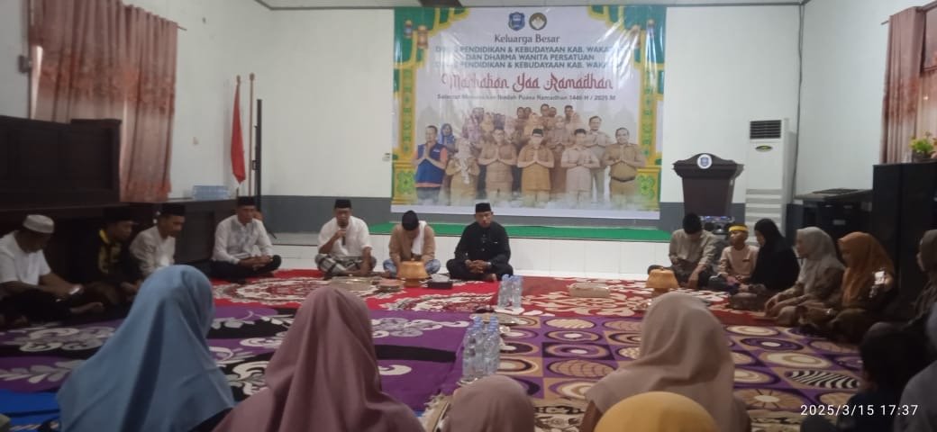 WAKATOBI, SEGMENSULTRA.COM – Memasuki hari ke-15 bulan suci Ramadan, Keluarga Besar Dinas Pendidikan dan Kebudayaan (Dikbud) Kabupaten Wakatobi bersama Dharma Wanita Persatuan Dikbud menggelar acara buka puasa bersama di Aula Dikbud, Sabtu 15 Maret 2025.