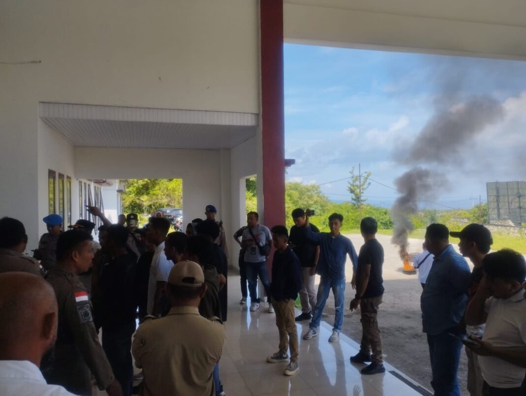 BAUBAU, SEGMENSULTRA.COM – Sejumlah mahasiswa yang tergabung dalam Aliansi Suara Parlemen Jalanan 19 (ASPJ19) menggelar aksi demonstrasi di Kantor DPRD Kota Baubau, Sabtu 26 April 2025. Mereka menyuarakan dugaan penggelapan dana dan penyalahgunaan wewenang yang melibatkan oknum anggota DPRD Kota Baubau berinisial NA.
