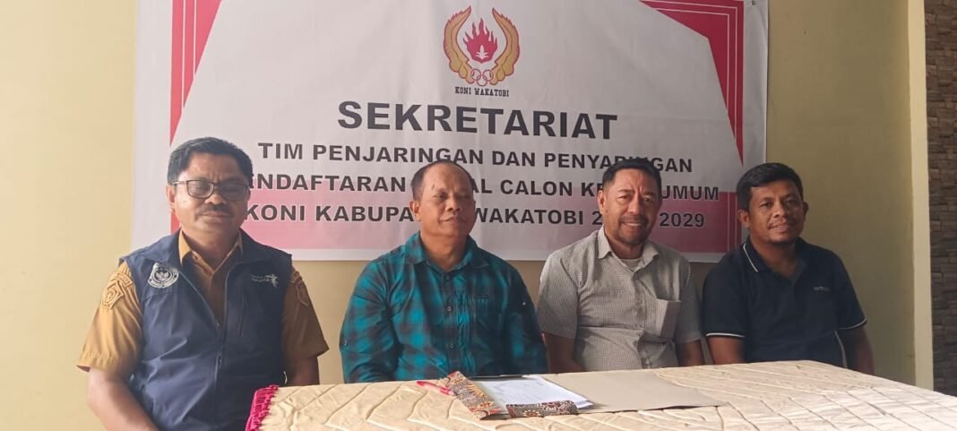 WAKATOBI, SEGMENSULTRA.COM – Tim Penjaringan dan Penyaringan (TPP) Komite Olahraga Nasional Indonesia (KONI) Kabupaten Wakatobi mulai membuka pendaftaran bakal calon ketua umum masa bakti 2025-2029. Ketua TPP, Zakaria, menyampaikan hal tersebut di Sekretariat KONI Wakatobi, Senin, 7 Juli 2025.