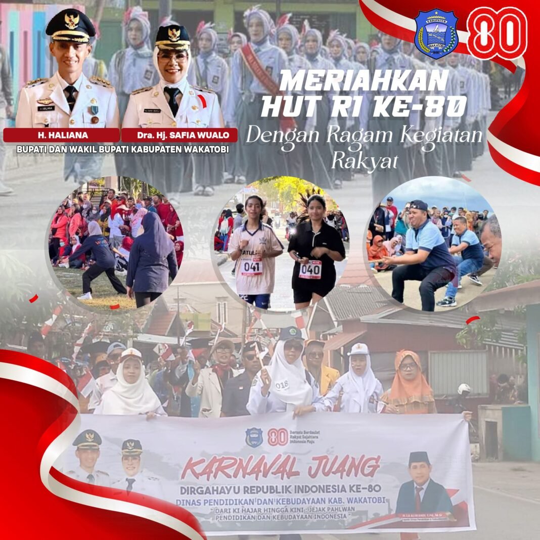 WAKATOBI, SEGMENSULTRA – Peringatan Hari Ulang Tahun (HUT) ke-80 Republik Indonesia di Kabupaten Wakatobi berlangsung meriah. Pemerintah daerah bersama masyarakat menggelar berbagai kegiatan yang memadukan unsur olahraga, budaya, hingga hiburan rakyat.
