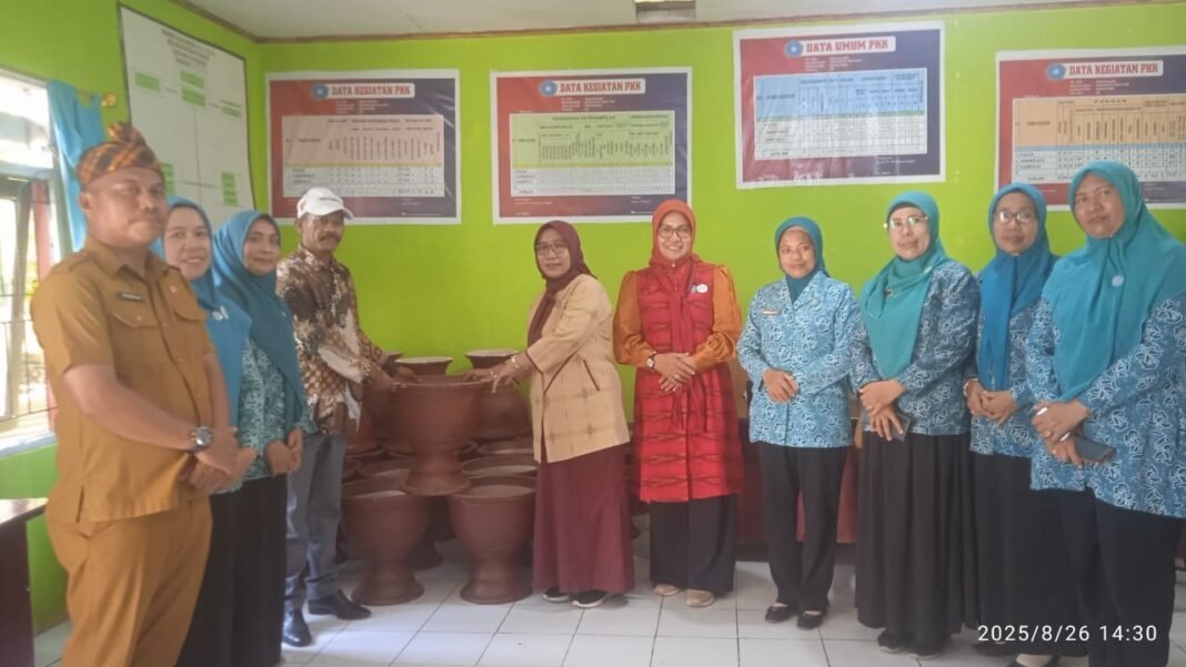 Dalam kunjungan tersebut, Hj Eliati sekaligus menyerahkan 40 pot bunga beserta tanaman hias untuk ditempatkan di berbagai sudut desa serta cat pagar sebagai bagian dari penataan lingkungan.(Adm)