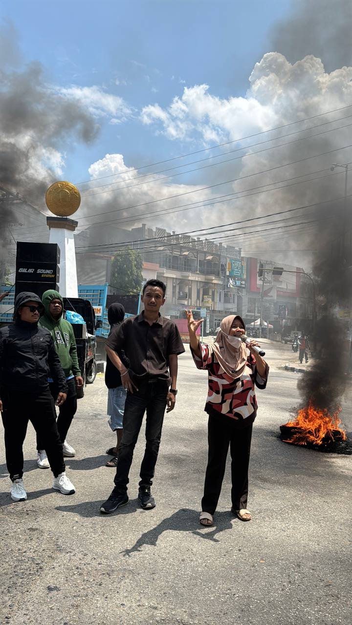 Situasi sempat memanas saat massa menutup simpang empat Tugu Kirab dengan tumpukan ban yang dibakar. Aparat kepolisian berjaga di lokasi untuk mengantisipasi kericuhan susulan.(Adm)