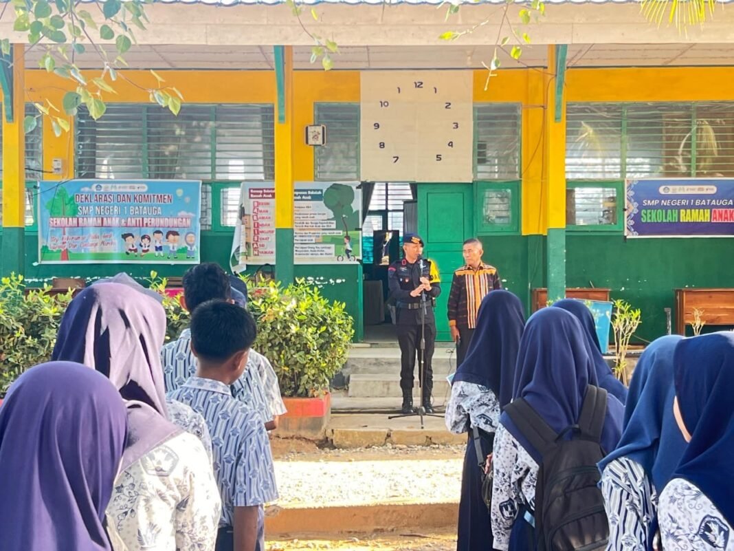 BUSEL, SEGMENSULTRA.COM – Batalyon B Pelopor Satbrimob Polda Sulawesi Tenggara (Sultra) menggelar kegiatan edukatif bertajuk Brimob Goes To School di SMP Negeri 1 Batauga, Kabupaten Buton Selatan, Senin (15/12/2025). Program ini menjadi bagian dari langkah preventif Polri dalam memberikan pembekalan kepada pelajar terkait bahaya narkoba, bullying, serta potensi tindak kekerasan di lingkungan sekolah.