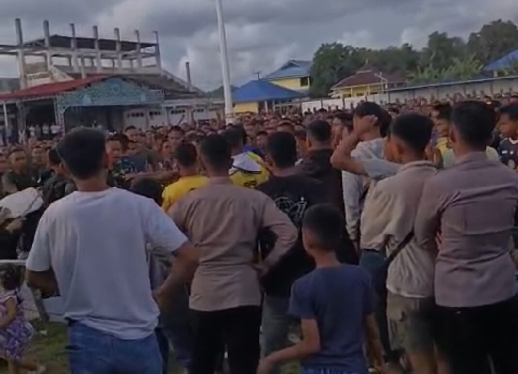BUTON SELATAN, SEGMENSULTRA.COM – Bentrokan antara oknum prajurit TNI dan oknum anggota Brimob saat pertandingan sepak bola di Lapangan Lakarada, Kelurahan Lakambau, Kecamatan BATAUGA, Kabupaten Buton Selatan, Minggu (4/1/2026) sore, memicu kepanikan di tengah masyarakat. Rekaman dan foto kejadian itu menyebar luas di media sosial, menimbulkan perhatian publik karena melibatkan dua institusi keamanan.