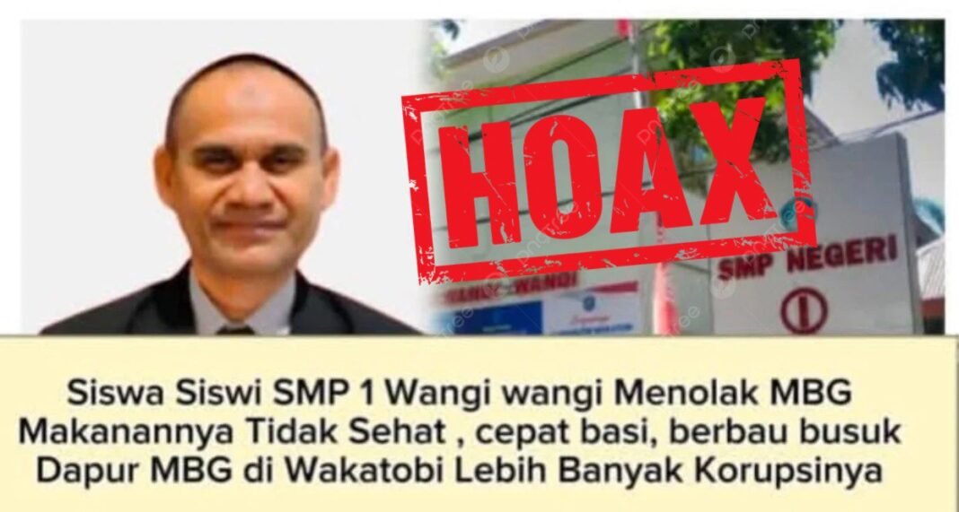 Tudingan tersebut beredar di media sosial Facebook melalui sebuah unggahan di akun Wakatobi Online yang bersumber dari akun anonim. Dalam unggahan itu, SMPN 1 Wangi-Wangi disebut menolak pelaksanaan MBG, bahkan dikaitkan dengan isu dugaan korupsi.